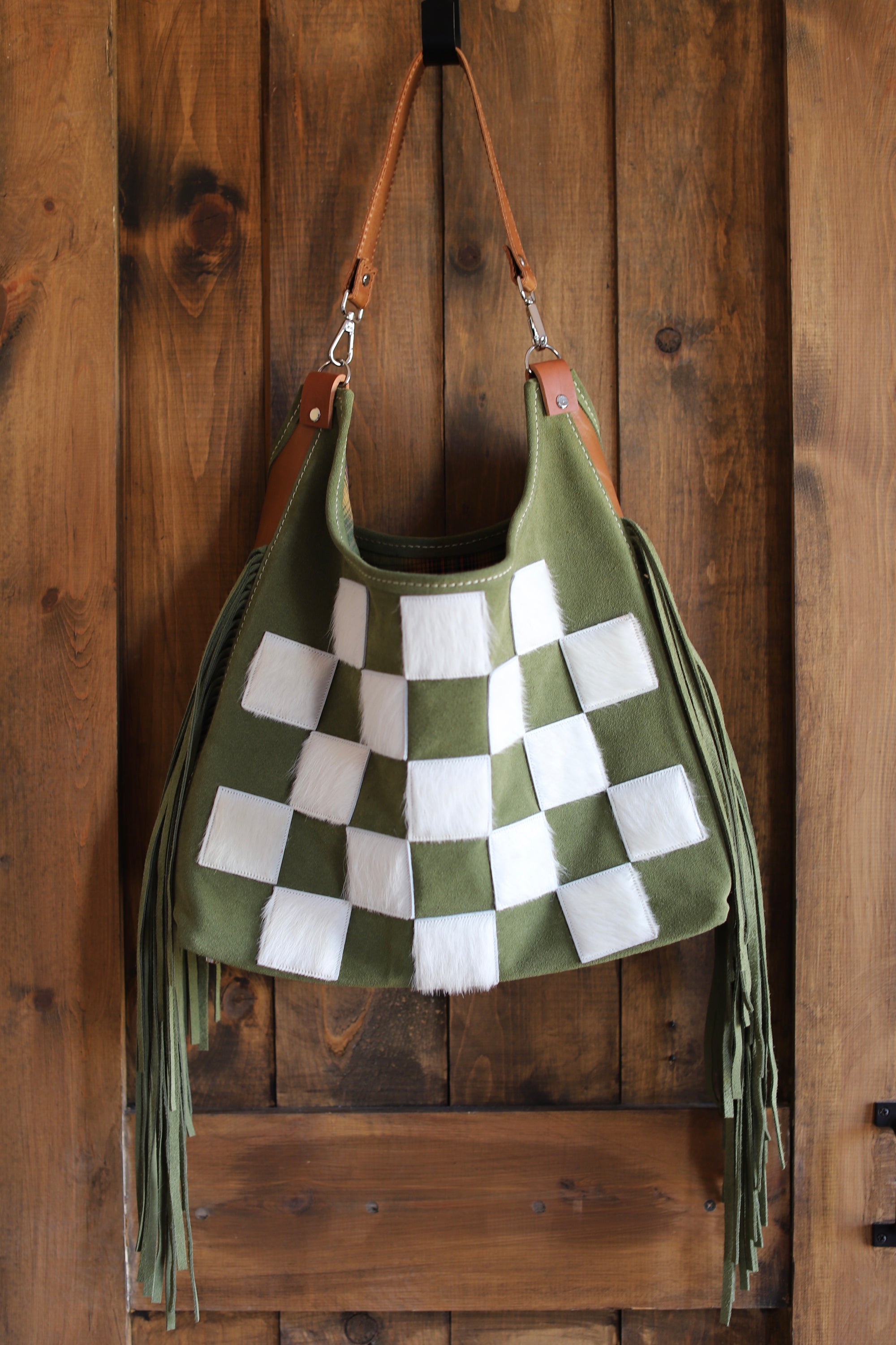 Olive Green Fringe Checkers